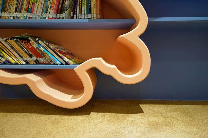 基于對已建成項目的持續(xù)性的使用觀察,在材料的選擇和細部設計方面進行了評估,保留或更新。防撞墊和皮革軟包應用于可能發(fā)生運動碰撞的位置,木制品的圓角、突出物的防護、活動部件的防夾手和視線可通達保證使用的安全。除此之外,兒童的身體尺度也體現(xiàn)在每一處設計之中——坡屋頂邊的場景小空間、高低臺面的接待臺、樓梯的扶手、衛(wèi)生間等等。