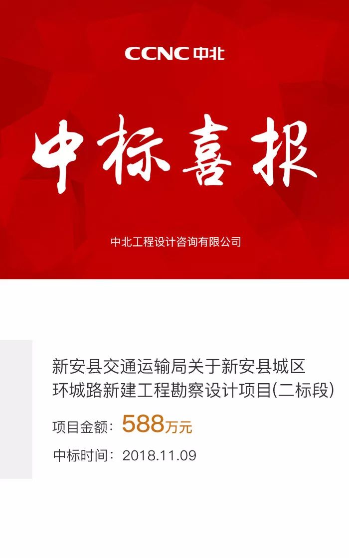 恭喜中北工程設(shè)計(jì)咨詢有限公司(簡(jiǎn)稱中北設(shè)計(jì)院)憑借豐富的勘察設(shè)計(jì)經(jīng)驗(yàn)、強(qiáng)大的技術(shù)團(tuán)隊(duì)、拔萃的行業(yè)競(jìng)爭(zhēng)力以及良好的信譽(yù)度于2018年11月9日順利中標(biāo)“新安縣交通運(yùn)輸局關(guān)于新安縣城區(qū)環(huán)城路新建工程勘察設(shè)計(jì)項(xiàng)目(二標(biāo)段)”。