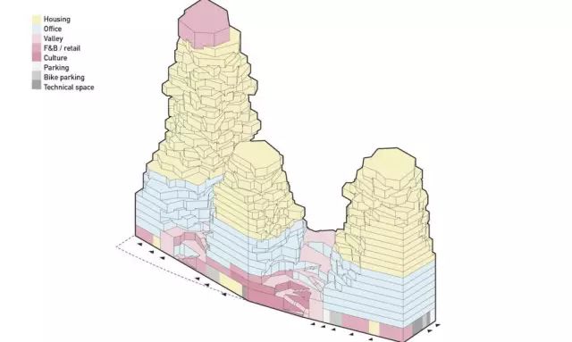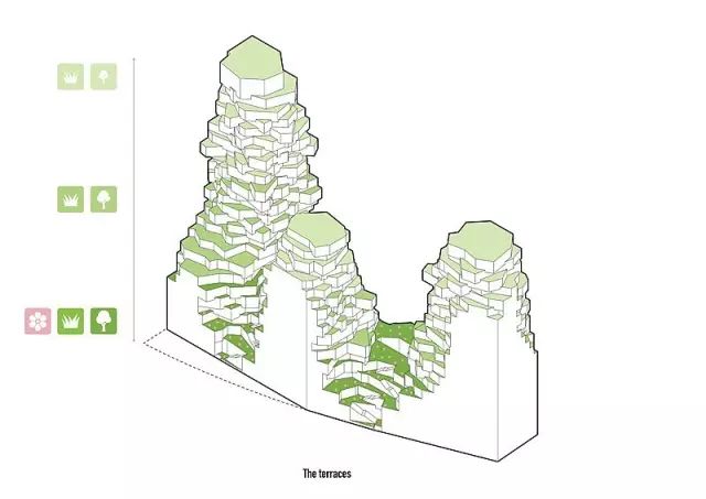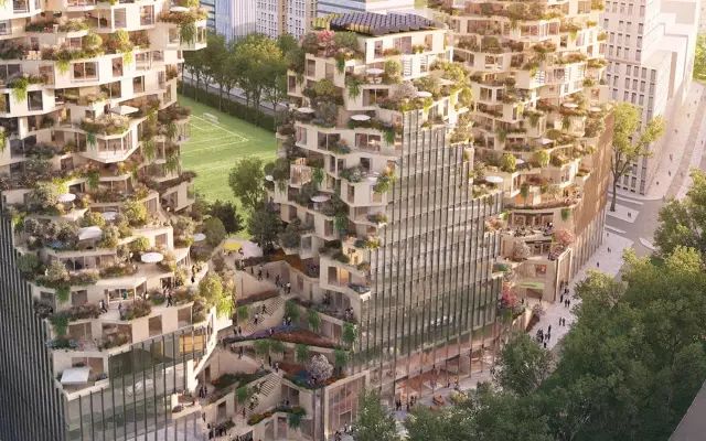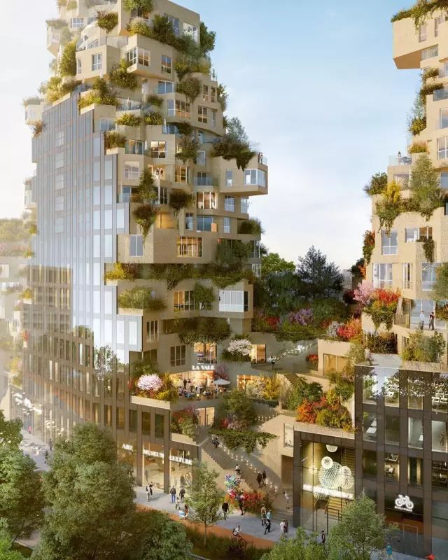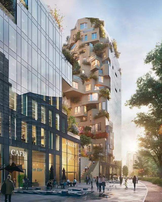 這座令人驚嘆的作品,是一個全綠植露臺綜合體,將涵蓋涵蓋公寓,辦公,地下停車庫,露天酒吧,各式零售商鋪及文化設施等。設計和功能力求在人性化尺度,自然環境和當地的商業區域氛圍中尋求平衡,項目預計2021年完工。